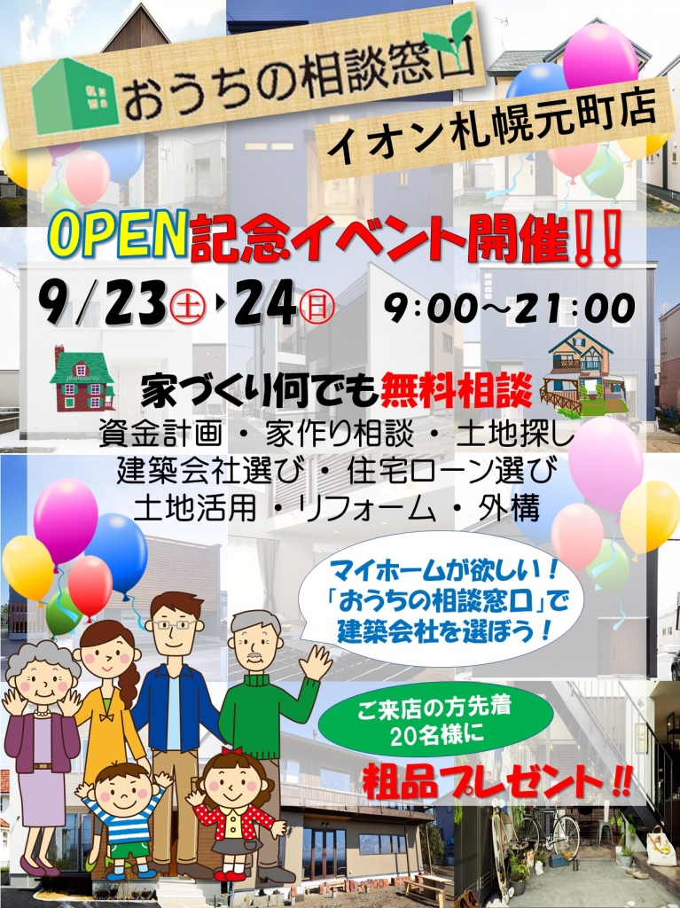 おうちの相談窓口イオン札幌元町店OPEN記念イベント開催中‼