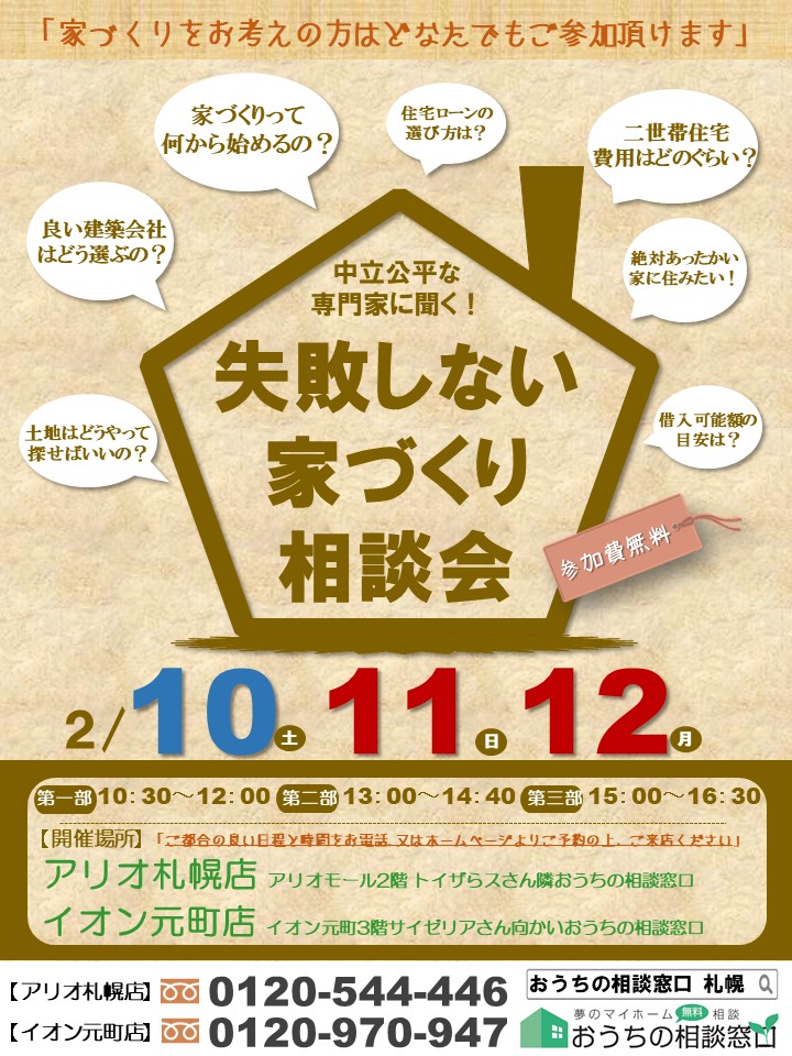 今週末の3連休は是非、おうちの相談窓口アリオ札幌店またはイオン札幌元町店にお越しください。