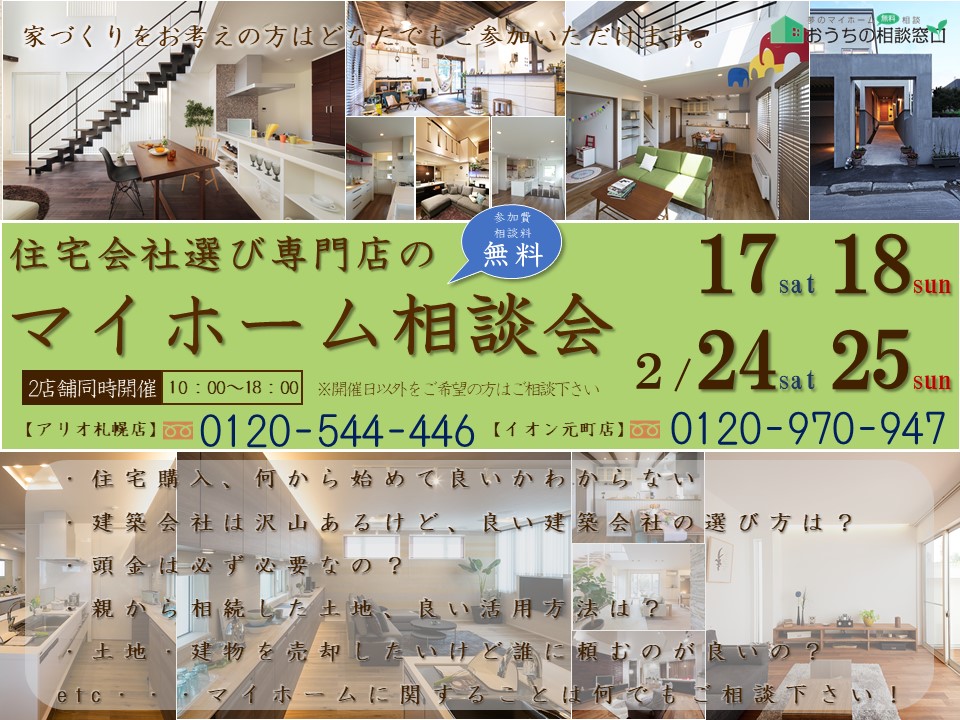 今週末と来週末はぜひ、おうちの相談窓口アリオ札幌店、またはイオン札幌元町店にお越しくださいませ